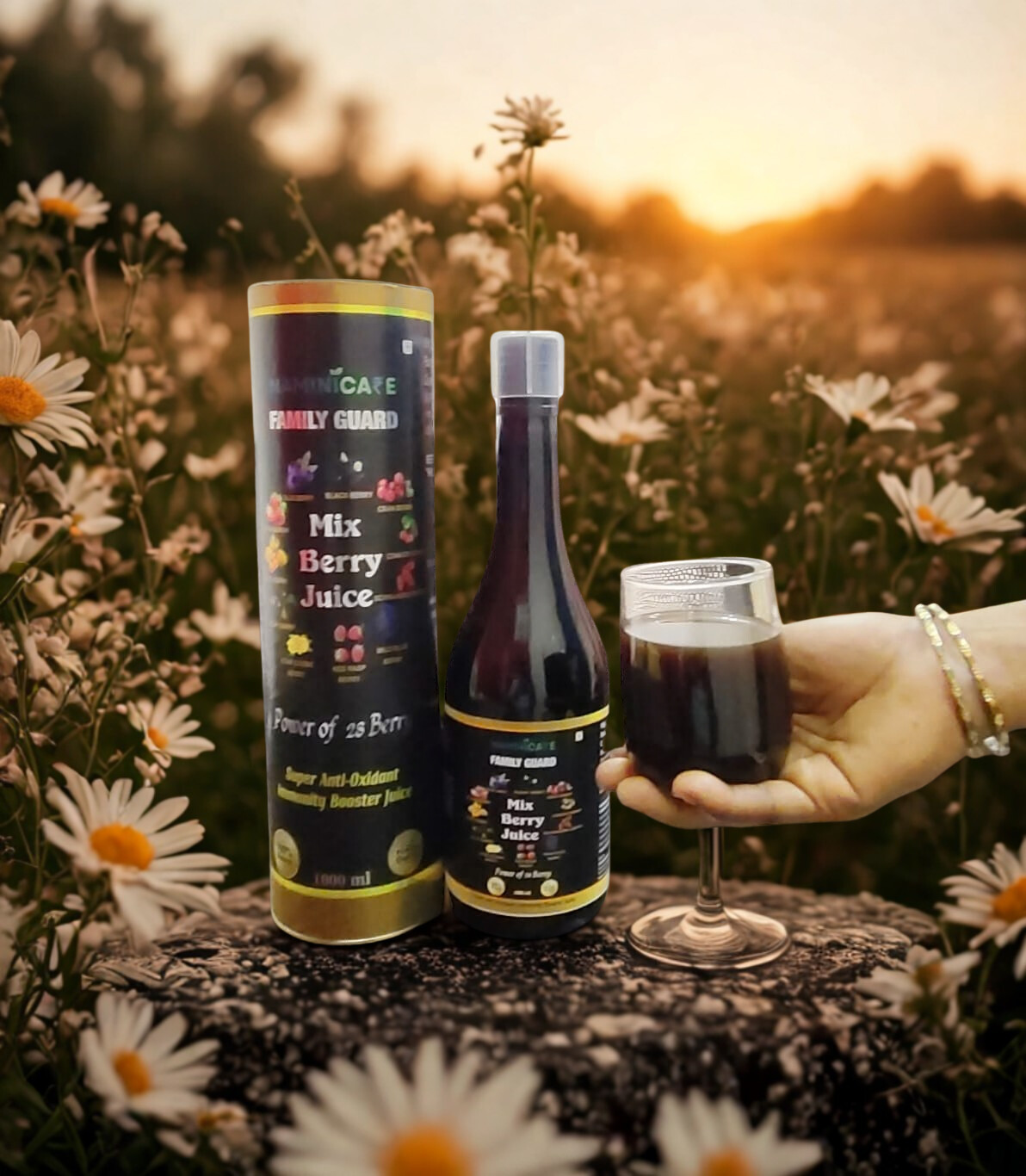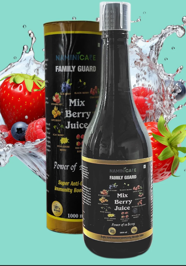 MIX BERRY JUICE contains 28 berries in every 30ml. Mix berry juice Strengthens the digestive and nervous systems, vision, and Heart rate, Restores the Antioxidant number, and also acts as a Super Antioxidant. Mix-berry juice is a refreshing and delicious beverage made from a combination of different berries. The juice is a perfect blend of sweet, tart, and tangy flavors, making it a great choice for those who enjoy fruity drinks. The berries used in the juice are packed with essential vitamins and antioxidants, making it a healthy option for those looking to incorporate more nutrients into their diet. The exact combination of berries used in Mix berry juice can vary, but some of the most common types include blueberries, strawberries, raspberries, blackberries, and cranberries. Each type of berry brings its own unique flavor and nutritional benefits to the juice, resulting in a well-rounded and satisfying beverage. Blueberries are a popular choice for Mix-berry juice as they are high in vitamin C, vitamin K, and fiber. They also contain a group of antioxidants called anthocyanins, which help protect the body from free radical damage. Strawberries are another common ingredient in Mix-berry juice, as they are rich in vitamin C, folate, and potassium. Raspberries are a tart and flavorful addition to mix-berry juice, and are known for their high content of vitamin C and manganese. They also contain a compound called ellagitannins, which have been shown to have anti-inflammatory and antioxidant properties. Blackberries are another berry commonly found in Mix-berry juice, packed with vitamin C, K, and fiber. They also contain a group of antioxidants called flavonoids, linked to improved heart health. Cranberries are often added to Mix-berry juice for their unique tart flavor and impressive health benefits. They are high in vitamin C, vitamin E, and fiber, and are well-known for their ability to prevent urinary tract infections. BENEFITS OF MIX BERRY JUICE 1. Loaded with antioxidants 2. Improve blood sugar 3. Support Heart Health 4. Help lower cholesterol levels 5. Help in weight loss 6. Improves eyesight 7. Removes fatigue and dizziness How to use : Take it twice daily(30ml) after the food consumption PANCH TULSI Panch Tulsi Drop, also called Holy Basil, is one of the most sacred plants in India and is considered "The Queen of the Herbs" for its restorative and spiritual properties. Tulsi (also spelled Tulasi or Thulasi) has been used for thousands of years to support a healthy response to stress, natural detoxification, increase stamina, endurance, and energy and restore balance and harmony. Our Panch Tulsi Drops are not only delicious and organic, but they are also nature's perfect rejuvenating. Modern research has classified. Tulsi contains minerals like Vitamin A , beta–carotene, potassium, iron, copper, manganese, and magnesium. It is a stress buster and a mood elevator. Helpful In: • Panch Tulsi Drop helps fight against various health problems associated with Pollution & different infectious conditions like Asthma, Anemia, Migraine, Allergy problems, skin rashes, itchiness, flu, etc. This is a highly concentrated & natural extract of 5 basil leaves which are known to have life-supporting properties. This possesses highly anti-oxidant, anti-ageing, anti-bacterial, anti-viral, anti-septic, anti-flu, antibiotic, anti-inflammatory & anti-toxin properties. Panch Tulsi Drop is especially effective against invading bacteria & viruses, Treats fungal infections & combats the harmful effects of the same.